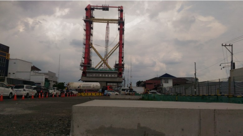 Pada beberapa hari sebelum Lebaran, pengerjaan proyek sudah memasuki tahap perakitan dan pemasangan struktur rangka baja atau lazim disebut erection works. Pekerjaan struktural ini membutuhkan tingkat akurasi dan kehati-hatian cukup tinggi, karena harus menggunakan alat crane untuk memasang puluhan ton berat rangka baja tersebut agar presisi.