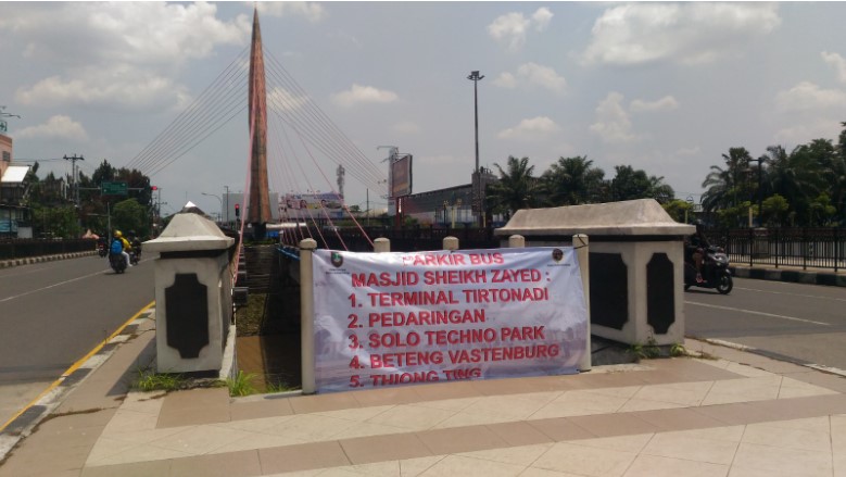 Pengunjung dari arah barat yang melintasi Jalan Ahmad Yani, akan terhambat oleh revitalisasi Viaduk Gilingan, untuk itu areal parkir bisa memanfaatkan Terminal Tirtonadi.