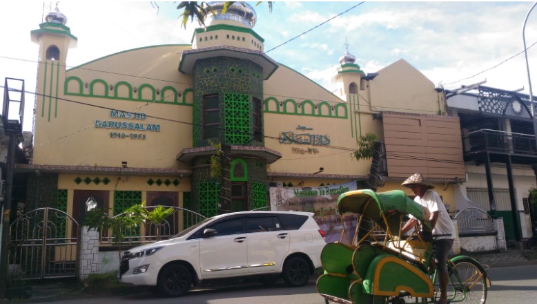 Masyarakat Banjar juga dikenal sebagai masyarakat religius sebagai penganut agama Islam. Karena ketaatan terhadap agama, saat merantau di Kampung Jayengan, mereka berinisiatif mendirikan langgar atau musala. Langgar tersebut semula dibangun hanya berdinding anyaman bambu pada 1910. Didirikannya masjid pada tahun 1910, sesuai dengan tulisan angka pada dinding depan Masjid Darussalam. Seiring dengan perkembangan waktu, di tahun 1930-an, mereka yang sebagian besar adalah saudagar berlian dan permata, menyisihkan rezekinya untuk mulai membangun masjid berdinding tembok.